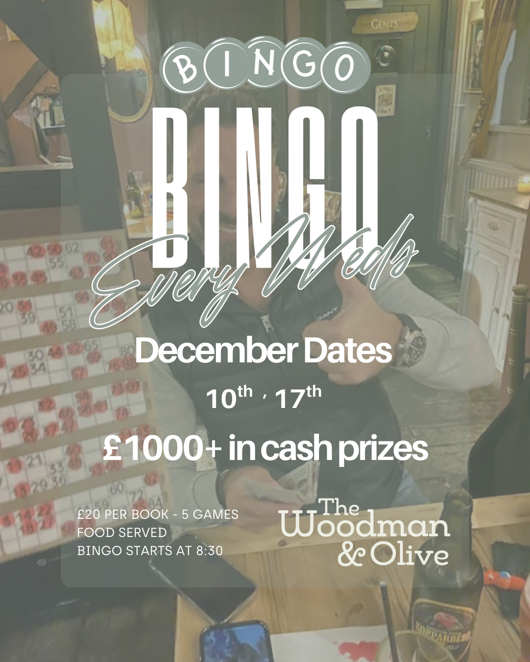 To book - please email: bookings@thewoodmanandolive.com or call Maria on 07940 967 807.